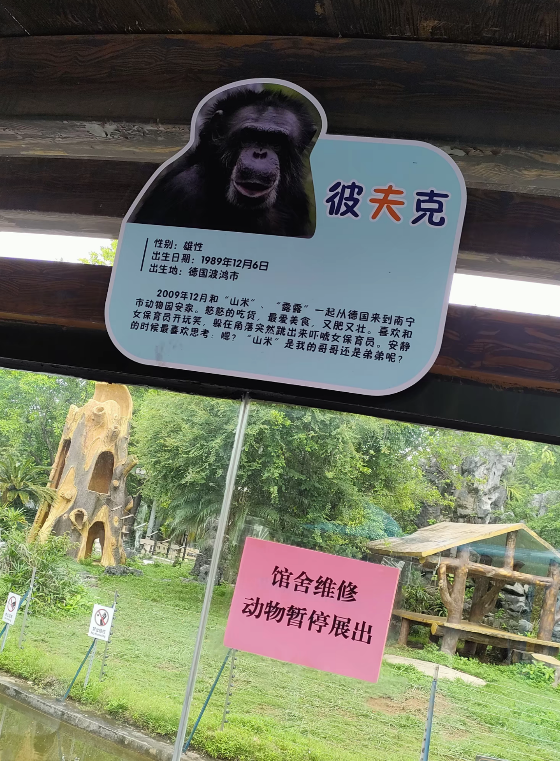 据了解,彼夫克是一只雄性黑猩猩,1989年出生于德国波鸿市,2009年12月来到南宁动物园。