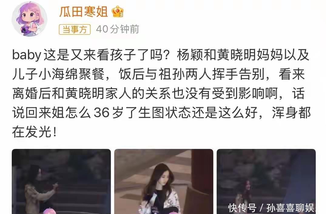 这一幕真的太暖了!11月20日,杨颖带着儿子小海绵与前婆婆黄晓明妈妈在上海聚餐,全程笑容满面,氛围融洽到让人忘记这是一对已经离婚的夫妻家庭。最让人惊讶的是,7岁的小海绵已经长到妈妈肩膀高了!